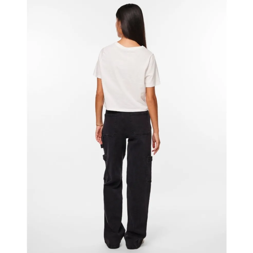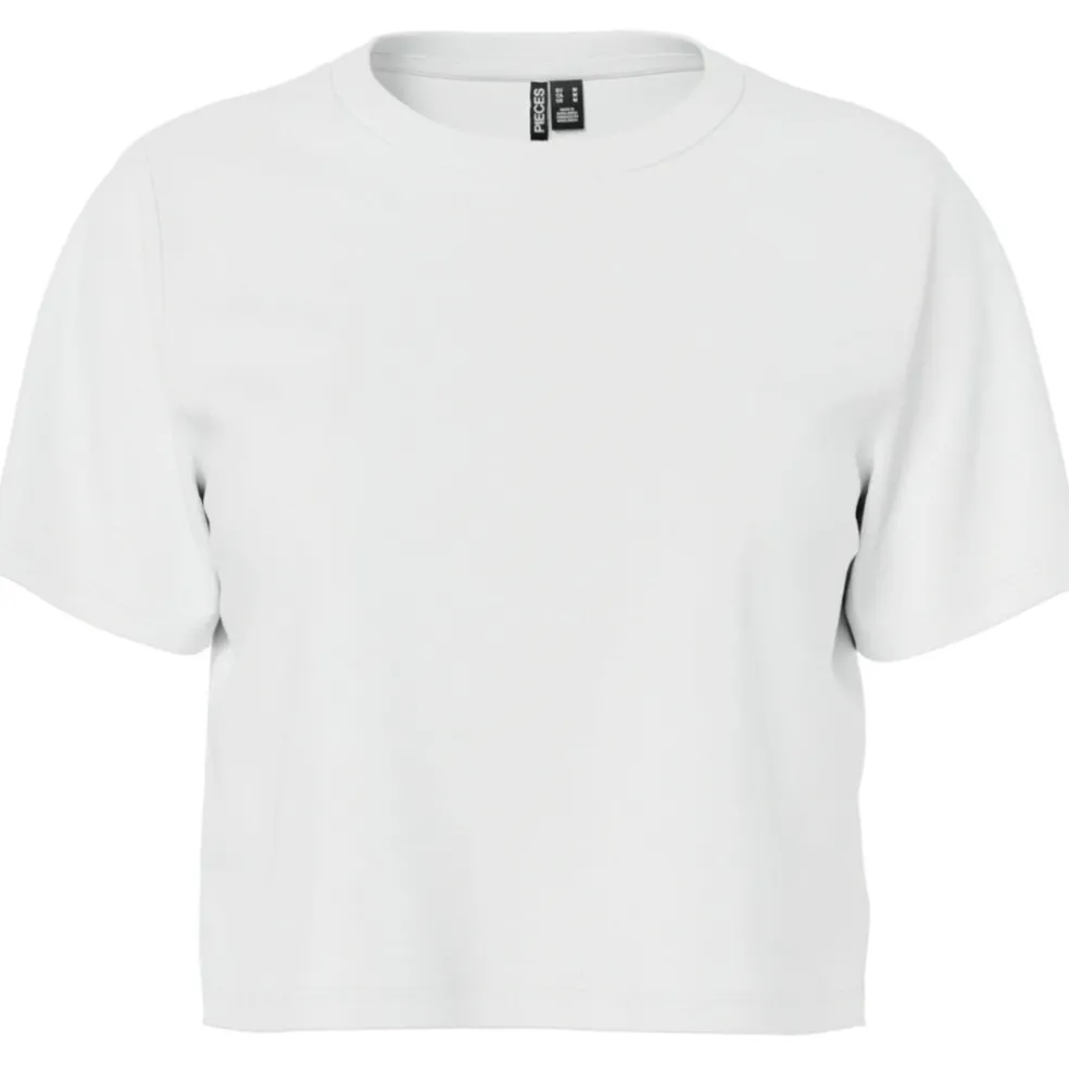 Fin basis t-shirt fra Pieces. T-shirten er lidt cropped, og den kan derfor styles med et par højtaljede jeans eller nederdel. Ideel til hverdag.