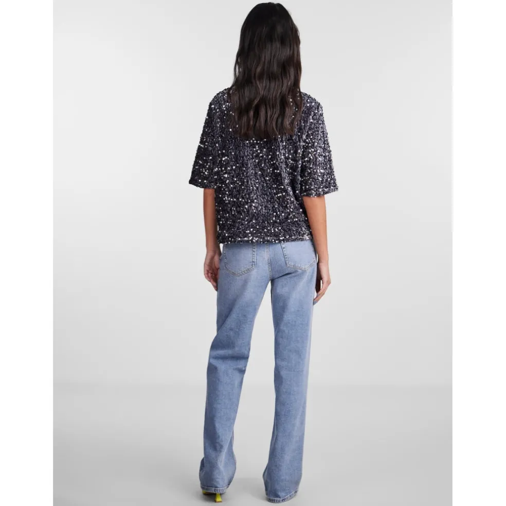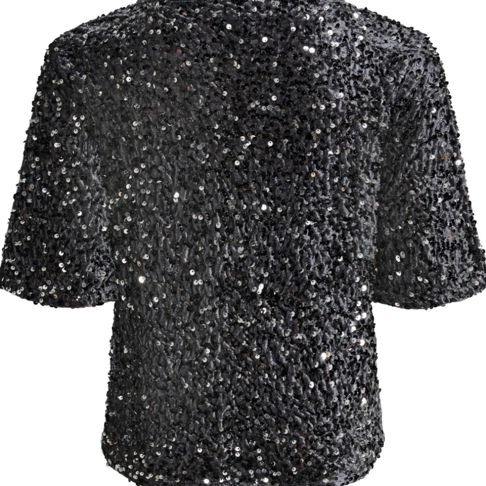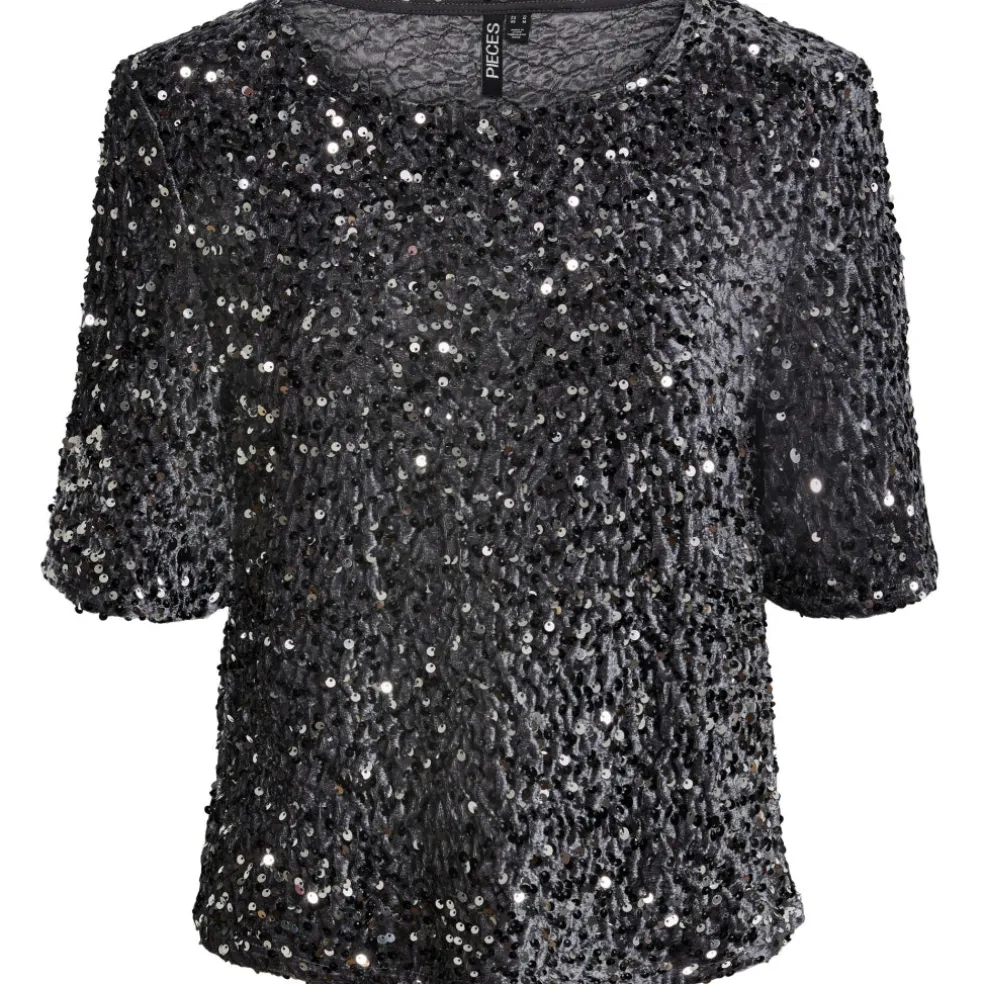 Feminin top fra Pieces med glitter og korte ærmer. Kan styles med matchende glimmerbukser fra samme serie for et komplet glitterlook.