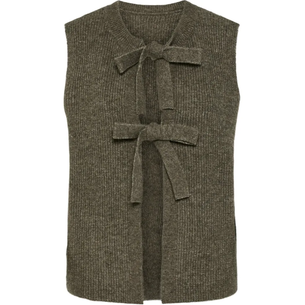 Den smukkeste vest med sløjfer fra Pieces. Kan styles med en basis t-shirt eller langærmet under for et komplet lag-på-lag outfit. Super feminin og alsidig.
