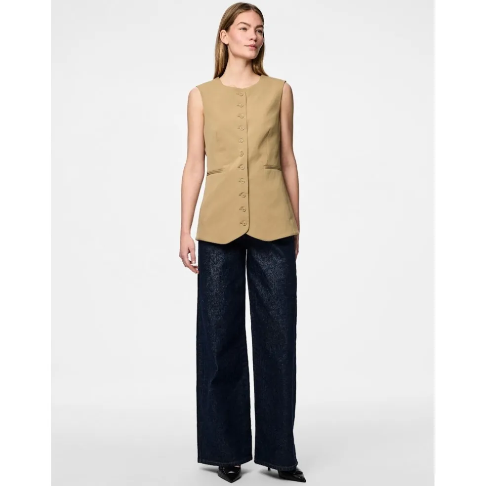 Vildt cool vest med knapper langs fronten. Vesten er tætsiddende, elegant og kan styles med matchende shorts i samme serie. Brug den til festlige anledninger og strål igennem.