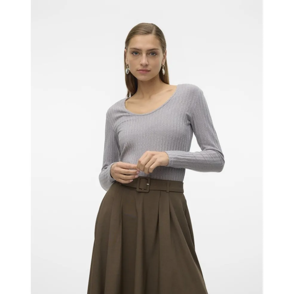 Sød ribbet bluse fra Vero Moda med u-hals. Blusen er super alsidig og kan både bruges til et par jeans eller matchende bukser fra samme serie.