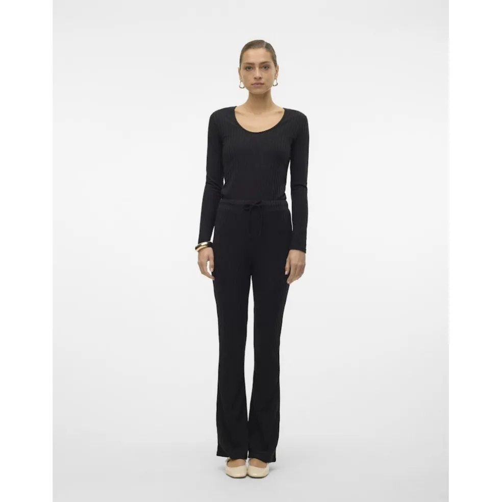 De lækreste flared bukser med bindebånd fra Vero Moda. Bukserne er fremstillet i en ribbet kvalitet, og kan styles med blusen fra samme serie.
