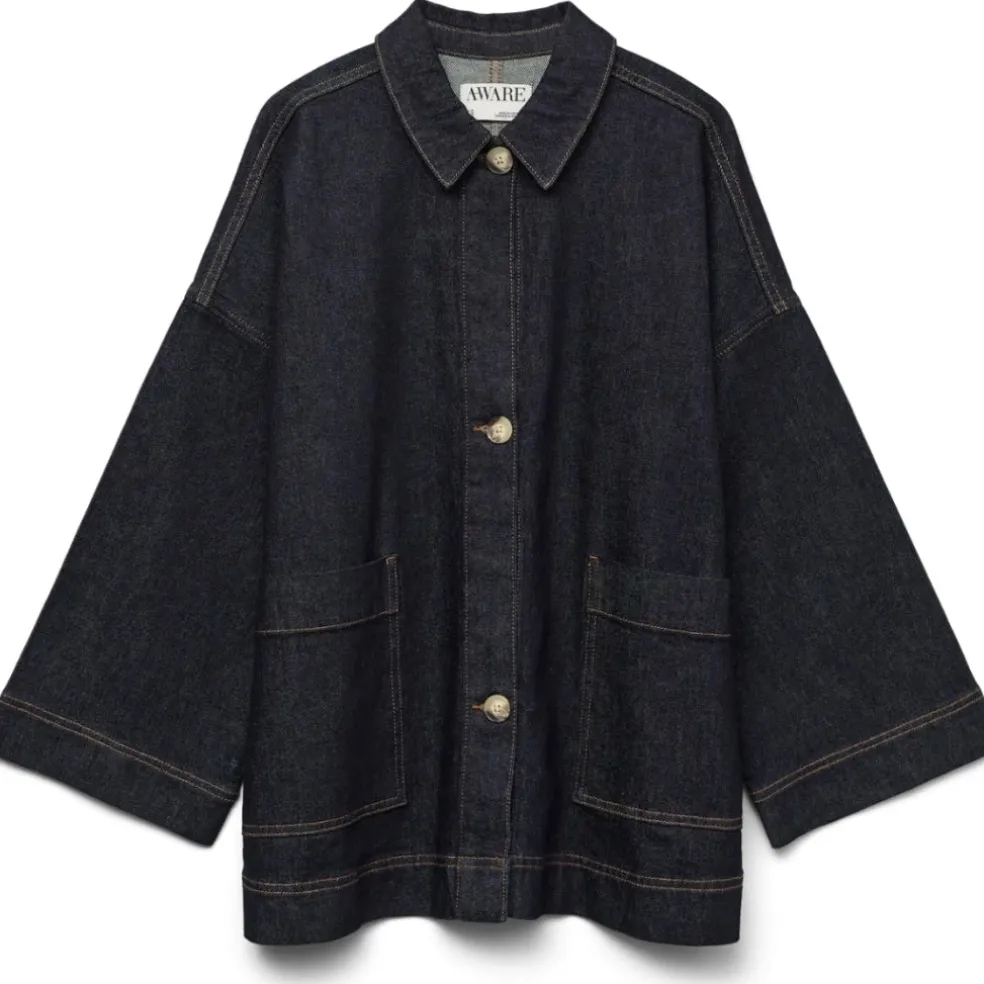 Oversize denim jakke fra Vero Moda. Brede ærmer, og perfekt til et hverdagssæt.