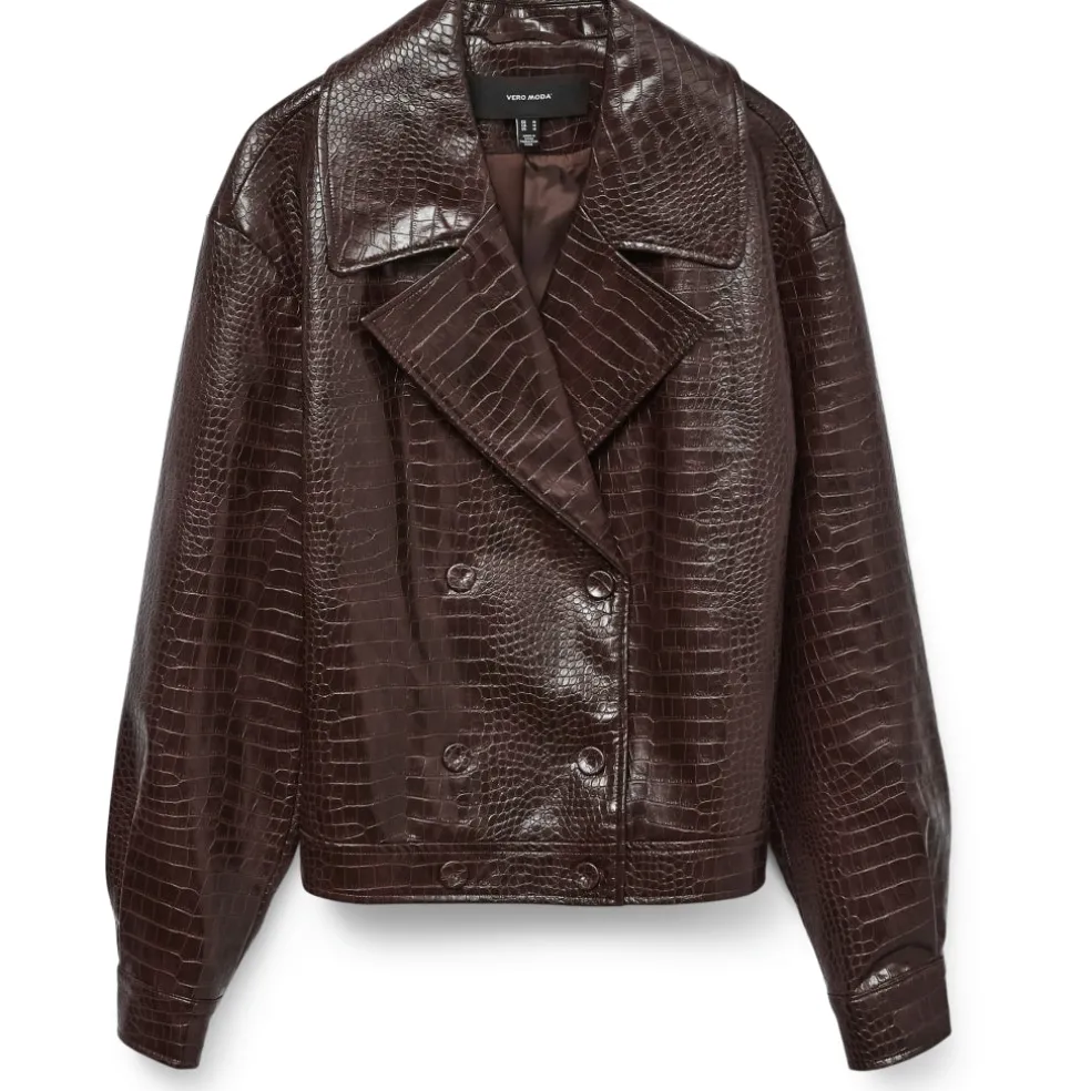 Cool jakke fra Vero Moda i lækkert skind, der tilføjer kant og stil til dit outfit. Jakken kan styles med nederdelen fra samme serie for et komplet look, og er perfekt til en aften ude.
