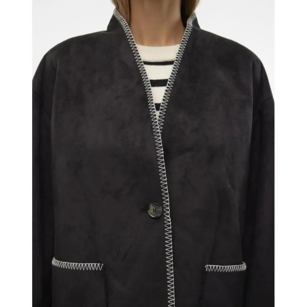 Den smukkeste jakke fra Vero Moda, der passer perfekt når du går efteråret i møde. Jakken lukkes med en knap, og har dekorative kontrastsyninger.