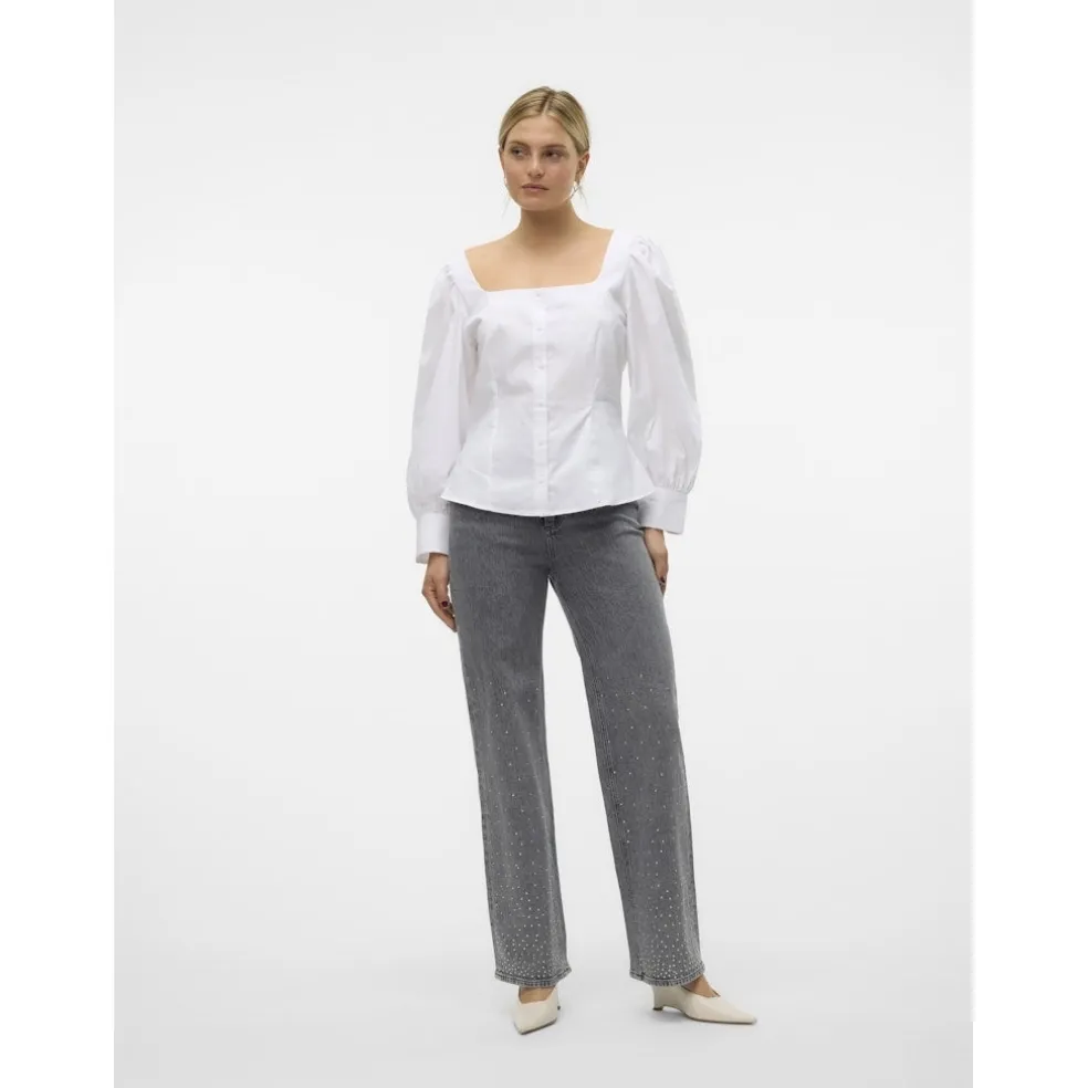 Seje jeans med nitter på siderne fra Vero Moda. Jeansen kan styles med denimjakken fra samme serie for et fuldendt, cool look.