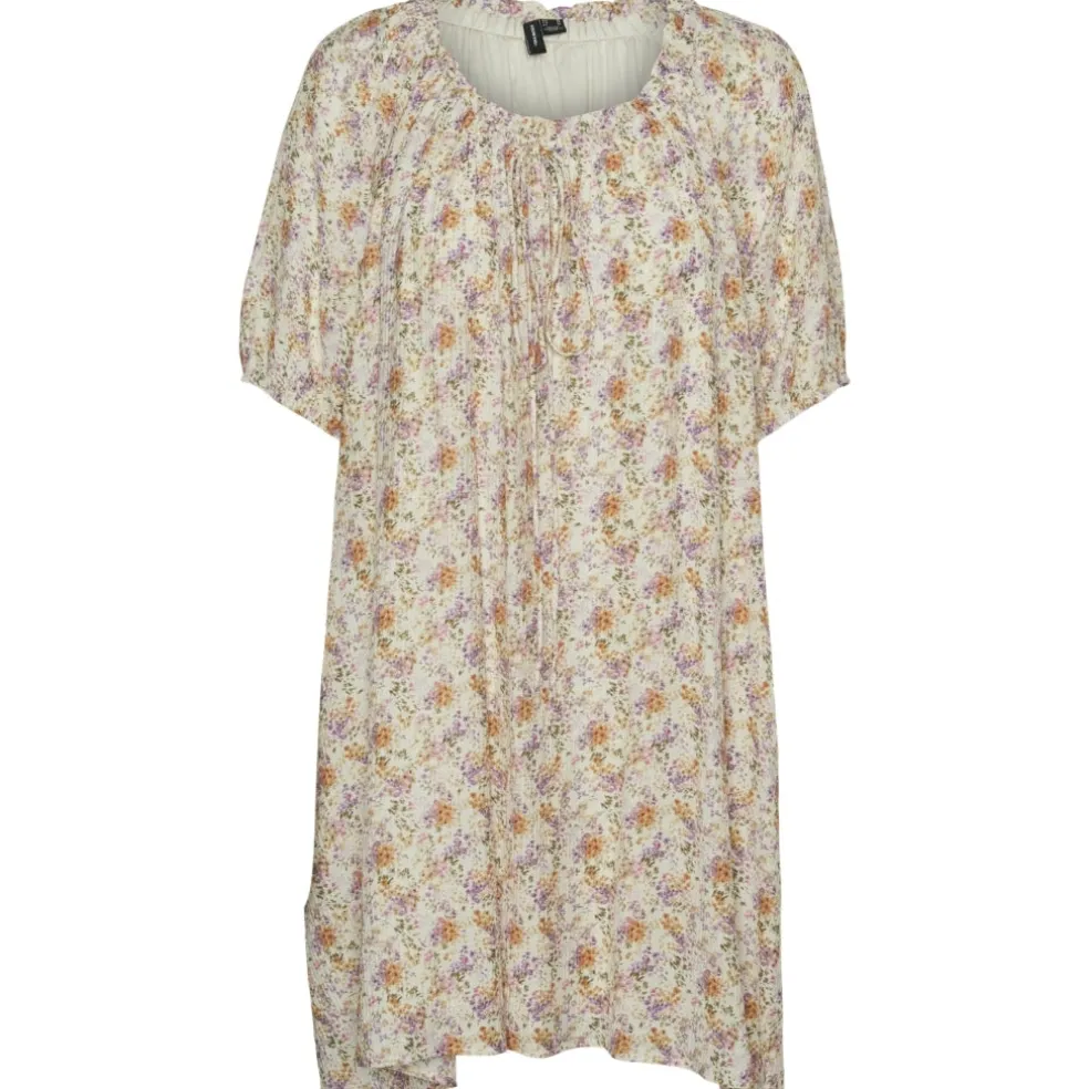Sød kjole med blomster og bindebånd fra Vero Moda.