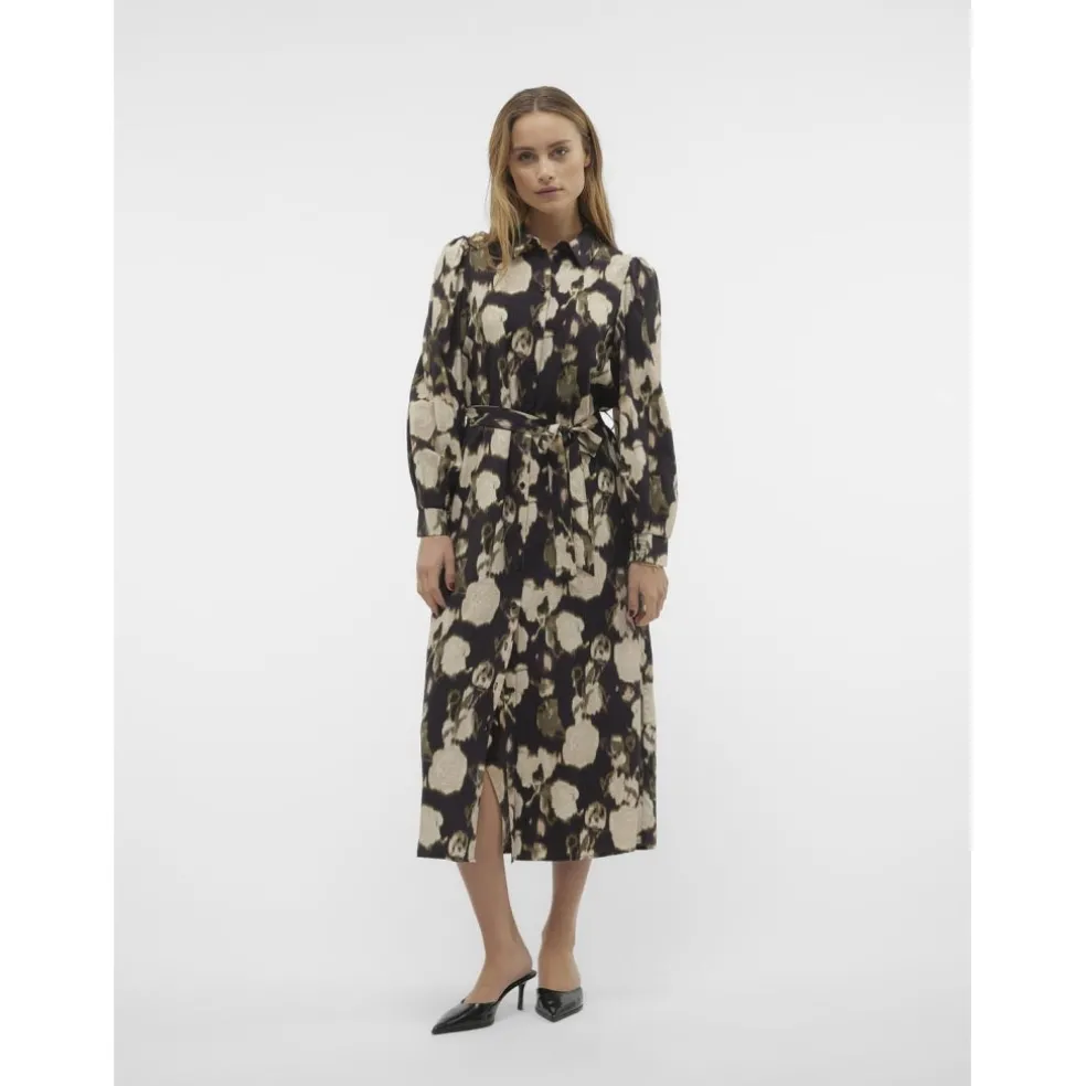 Smuk og elegant skjortekjole fra Vero Moda, med bindebånd i taljen.