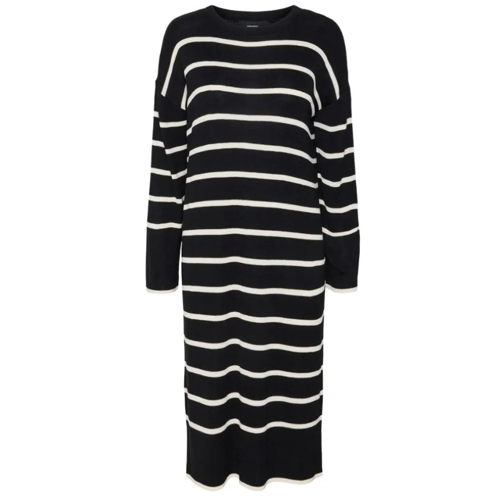 Virkelig fin strik kjole fra Vero Moda med dropped shoulders. Kjolen er i loose fit og har rund hals.