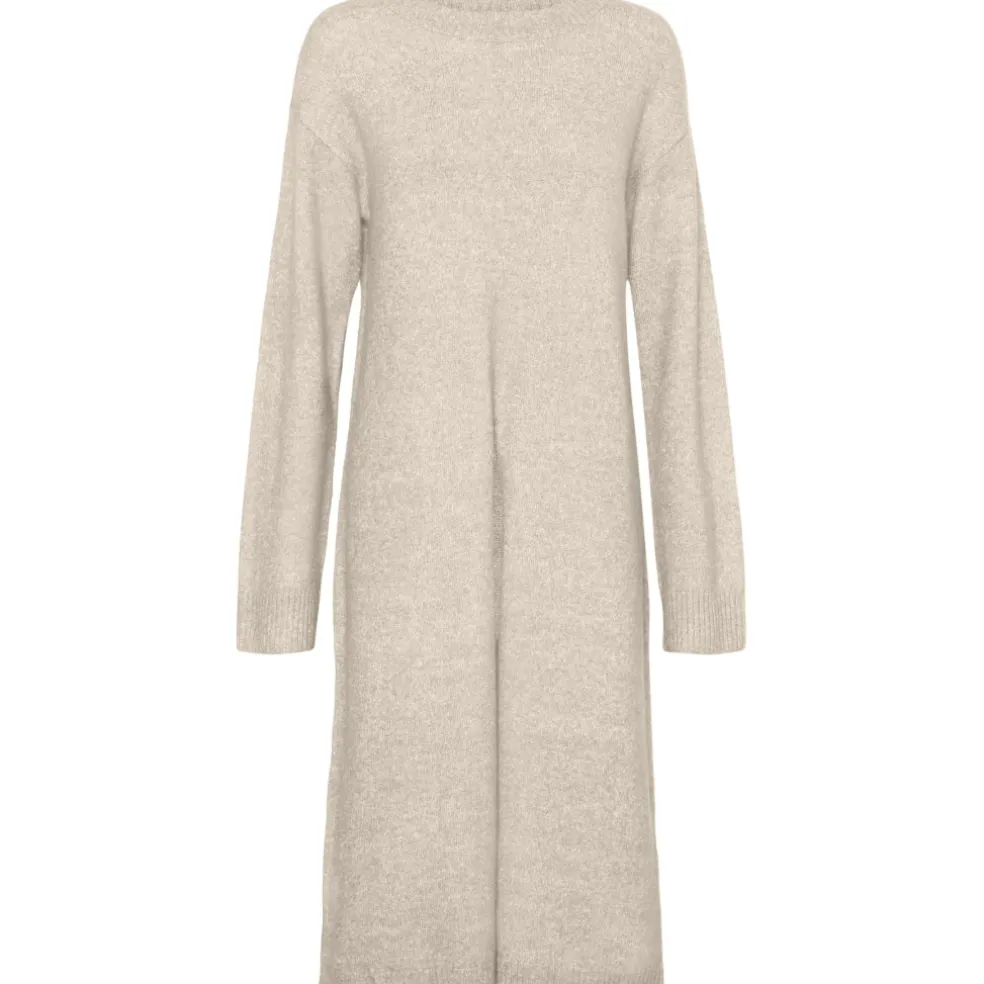 Strikket kjole med slids foran. Style kjolen med et par strømpebukser og høje støvler, for det perfekte efterårslook.