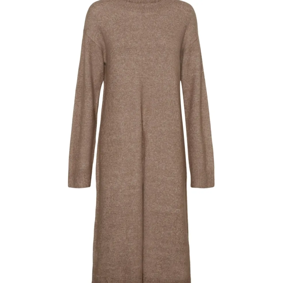 Strikket kjole med slids foran. Style kjolen med et par strømpebukser og høje støvler, for det perfekte efterårslook.