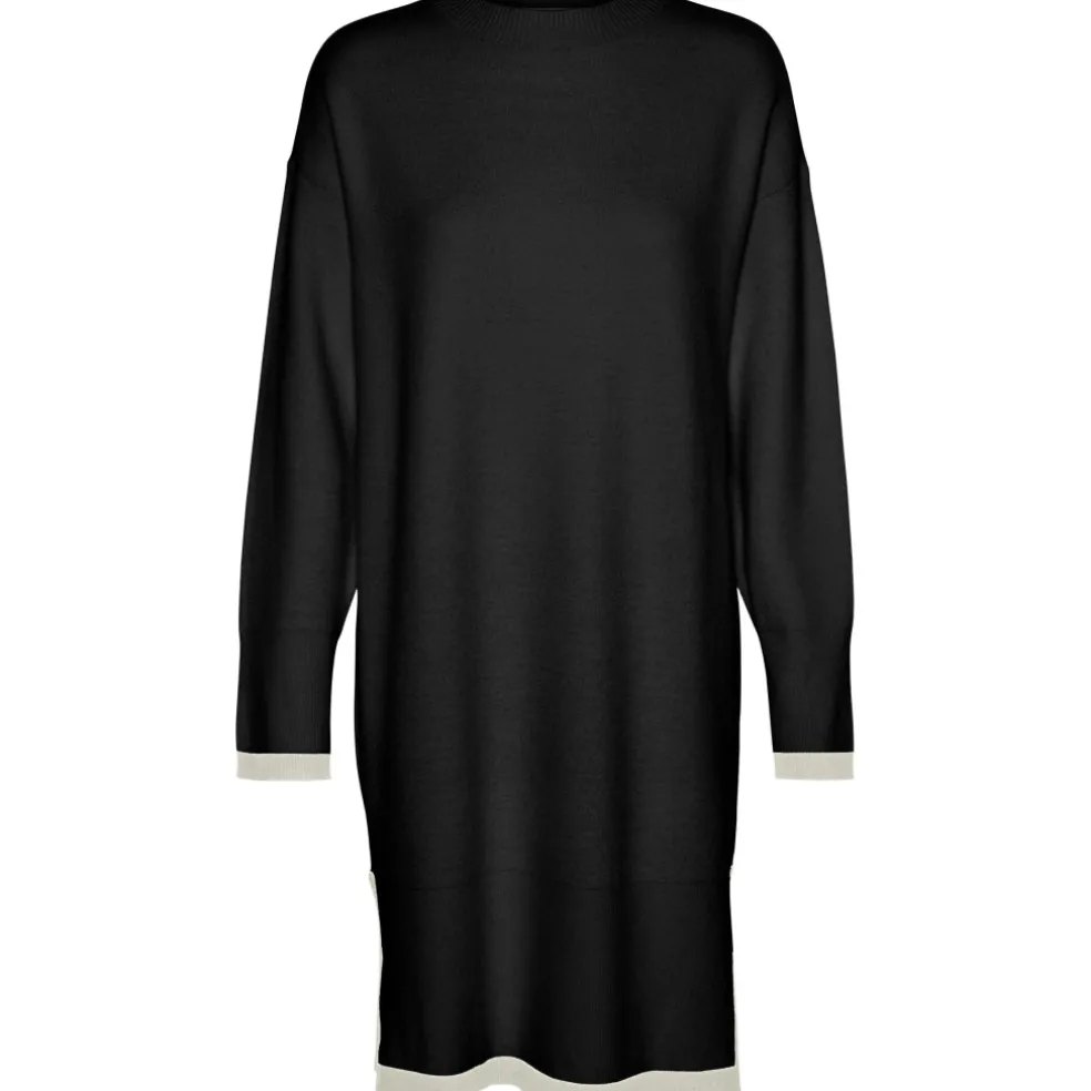 Smuk og stilren strikket kjole med kontrastkanter.