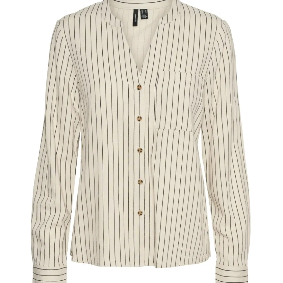 Fin, klassisk skjorte fra Vero Moda med v-udskæring. Skjorten har en enkelt brystlomme og knapper langs fronten, og kan styles til hvad som helst i klædeskabet. En uundværlig style hvis du spørger os.