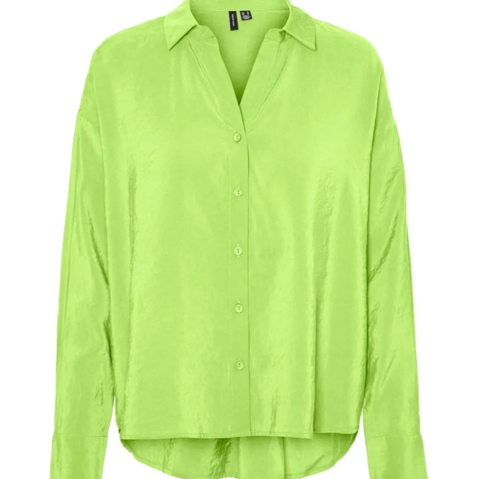 Pæn oversize skjorte fra Vero Moda. En oversized skjorte er den perfekte stil til de dage, hvor du går efter en behagelig, men alligevel stilfuld fornemmelse. Style den med jeans til din hverdag eller pift tingene op ved at tilføje en mini-nederdel og hæle til den.