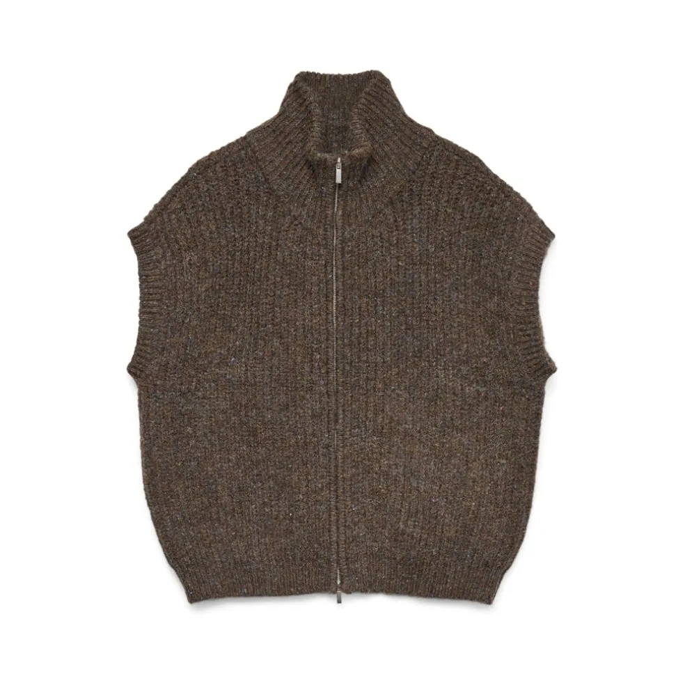 Uanset om det er for at holde varmen eller for at tilføje et unikt look, er en strikket vest altid et smart valg. Den tager dig nemt fra vinter til efterår uden at gå på kompromis med stil eller komfort. Denne cool vest giver dig et perfekt, opløftet touch, samtidig med at den tilføjer blødhed til dit look. Brug den til at nedtone din klassiske, oversized skjorte og give den et mere sammenhængende look. Et absolut must-have i garderoben.