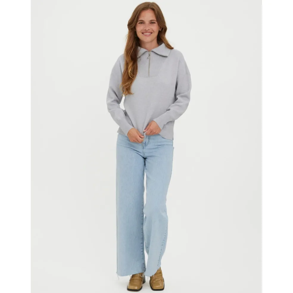 Strik pullover med høj hals, half-zip og dropped shoulders. Modellen er 175 cm høj og har en str. S på. Style denne smarte strik pullover med et par jeans og loafers for et casual hverdags look.