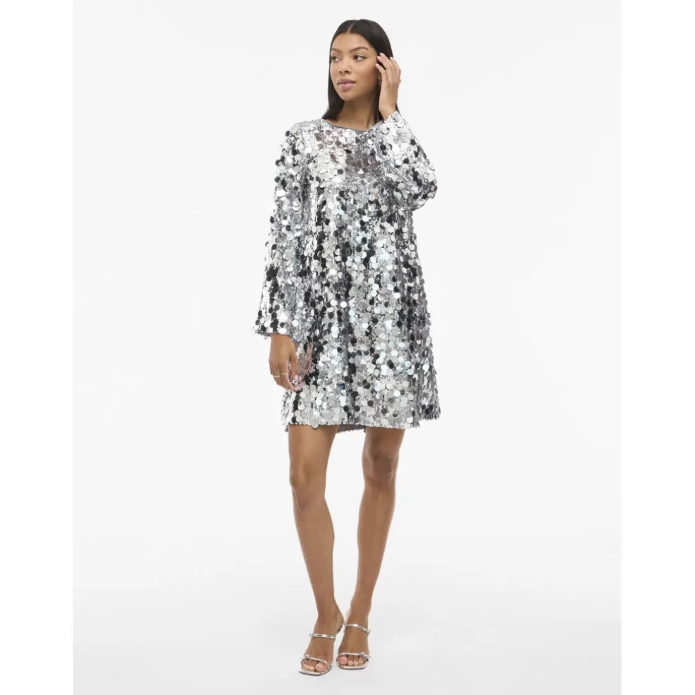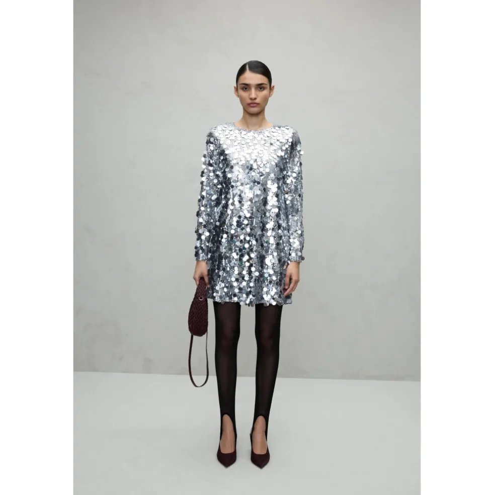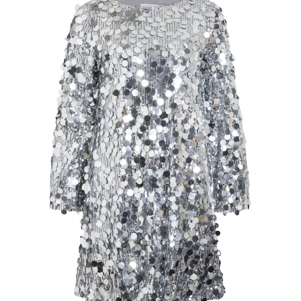 Langærmet partykjole med rund hals og en almindelig pasform. Pyntet med pailletter for et festligt look, perfekt til sæsonens arrangementer.