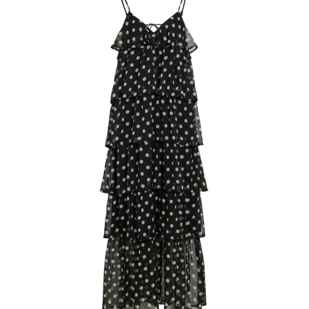 Smukkeste flæsekjole fra Vila. Perfekt til sommerens fester. Style med et par stilletter.