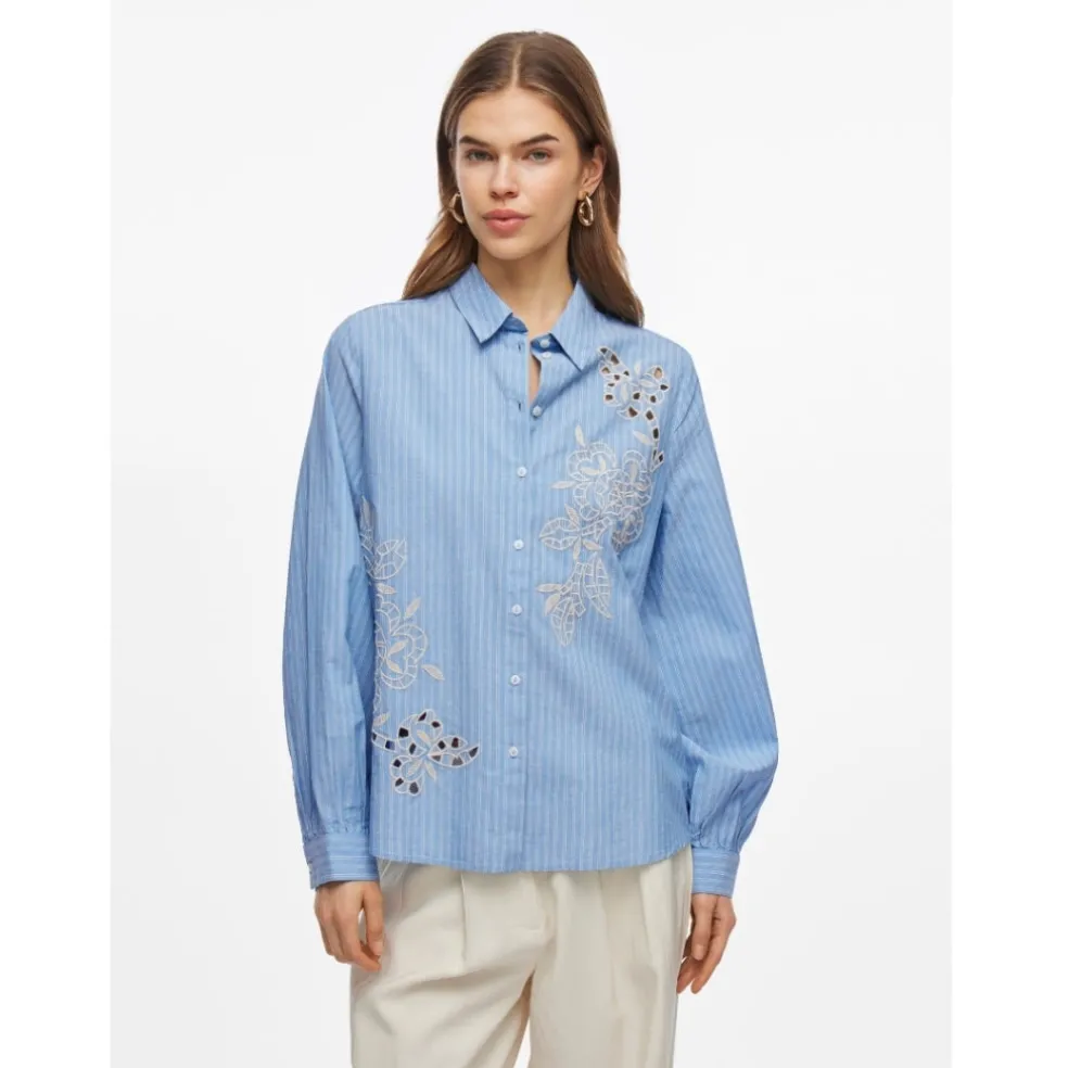 Smuk, elegant skjorte fra Vila. Skjorten har det fineste print, der kan pifte ethvert outfit op. Den er gennemknappet og har en klassisk krave, og den kan både bruges til hverdag og finere brug.