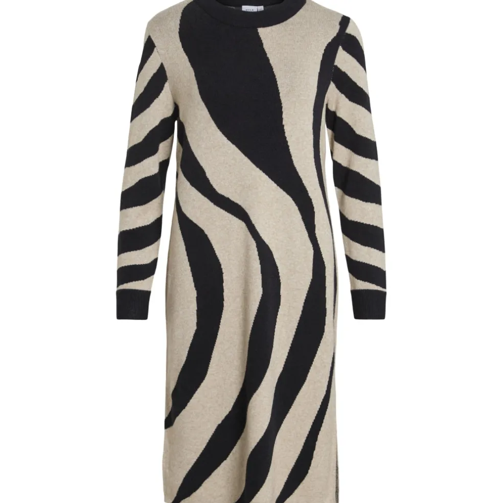 Smuk strik kjole fra VILA i et flot mønstret print. Kjolen er helt perfekt til den kolde tid med et par strømpebukser og støvler.