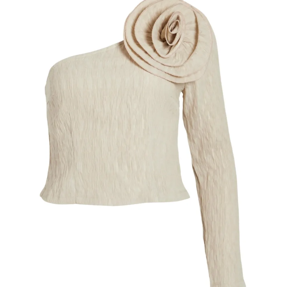 Virkelig fin one-shoulder bluse fra Vila med en fin detalje med en stor rose på skulderen.