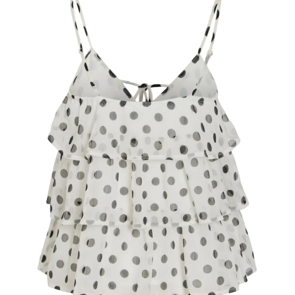 Smukkeste top med flæser. Style til hverdag med et par jeans, og brug den med en nederdel til sommerens fester.