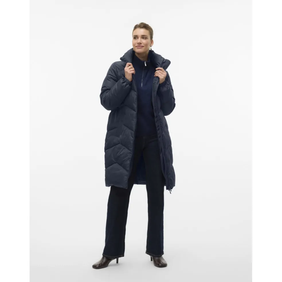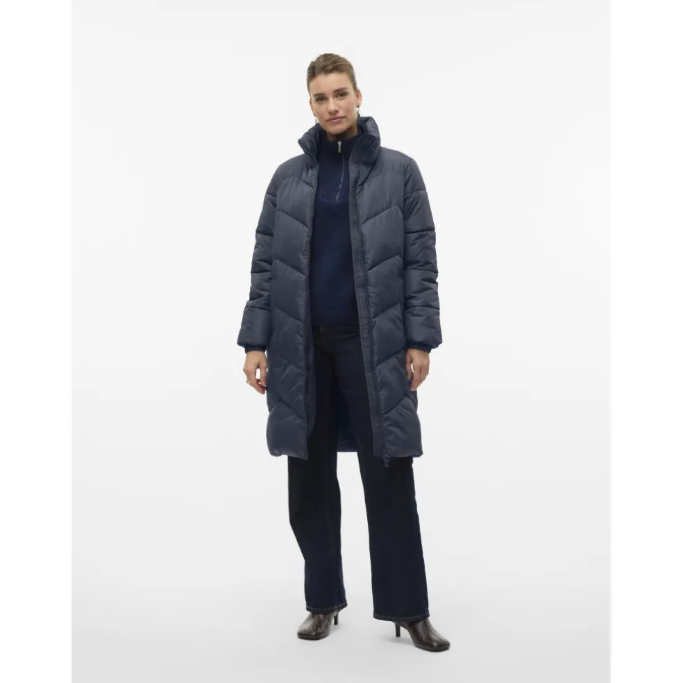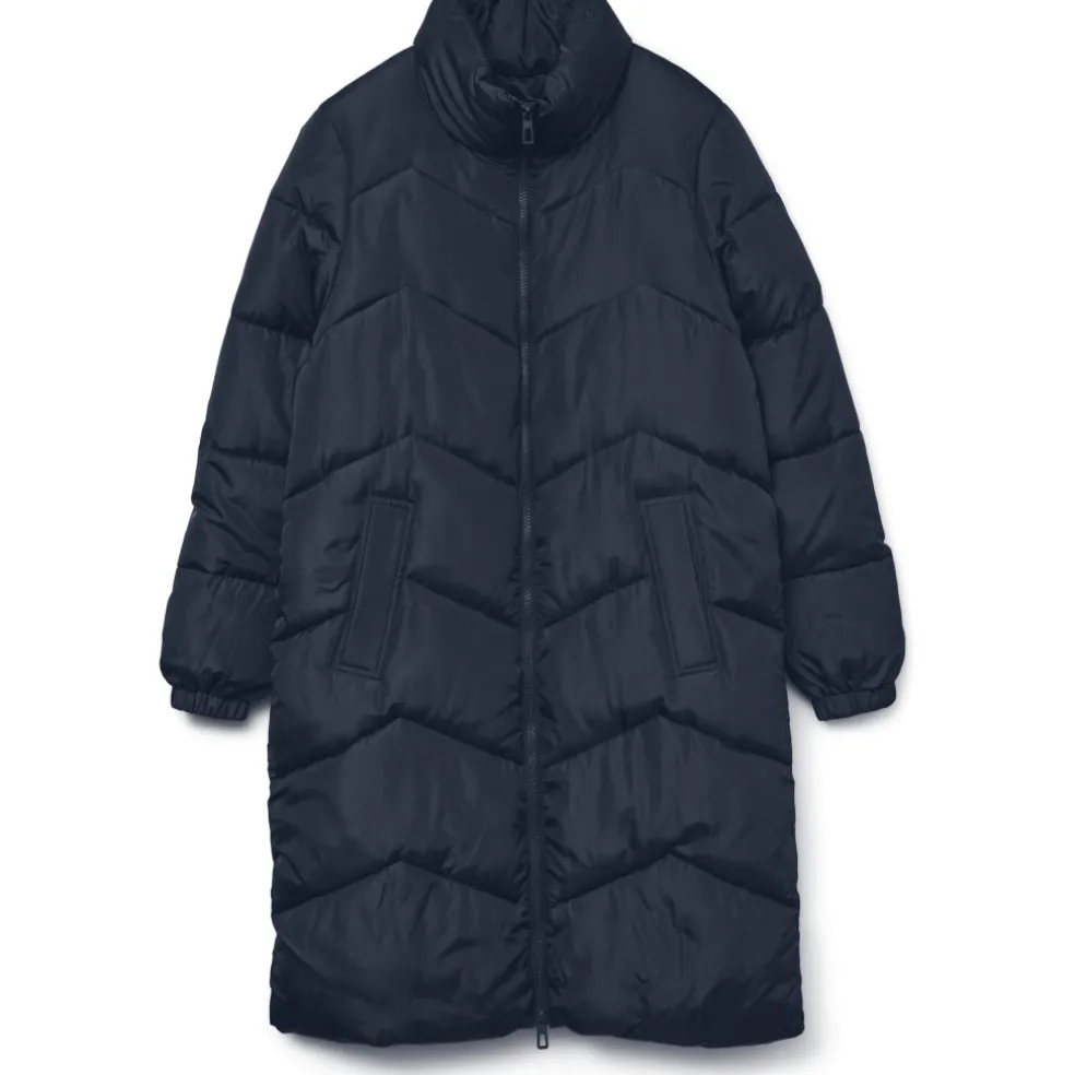 Jakke fra Vero Moda med høj hals og tovejs lynlås. Lang model med forlommer og fuld foer. Fyld med polyester for ekstra varme.